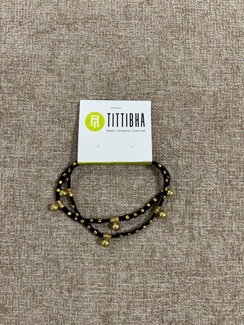 Description – Nupur Pancha is a statement piece of brass anklets made using ancient technique and modern aesthetics. The traditional brass beads woven along black cotton thread is secured with a traditional ball-loop closure. These minimal yet elegant anklets have rooted style and rustic vibe.